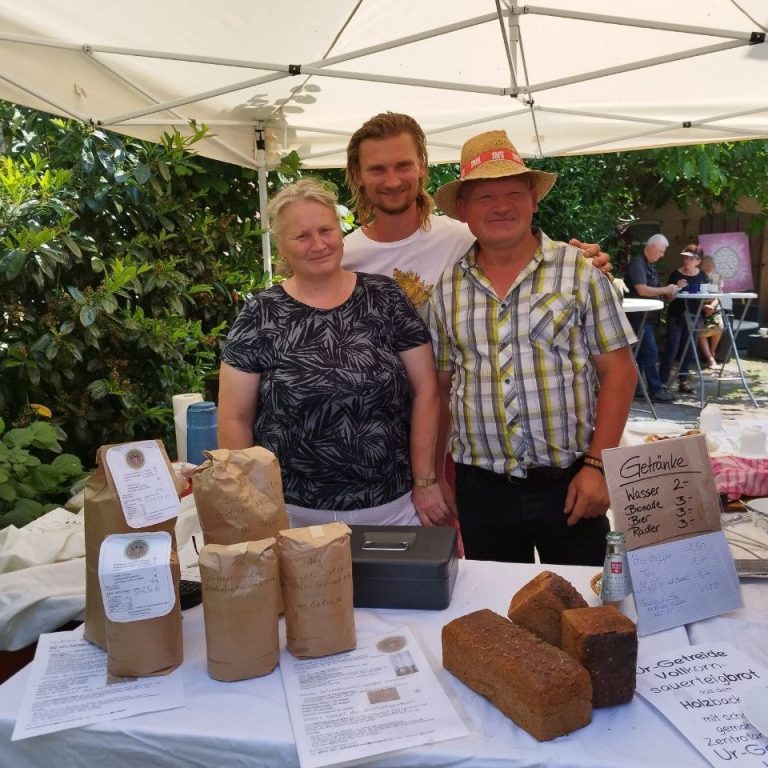 „Unverkreuzte Ur-Sorten, die alle wertvollen Nährstoffe und Vitamine bewahren. In kleinen Mengen angebaut, sorgfältig geerntet, von Hand gereinigt und weiterverarbeitet zu Vollkornmehl, Müsli, Brot und mehr.“
